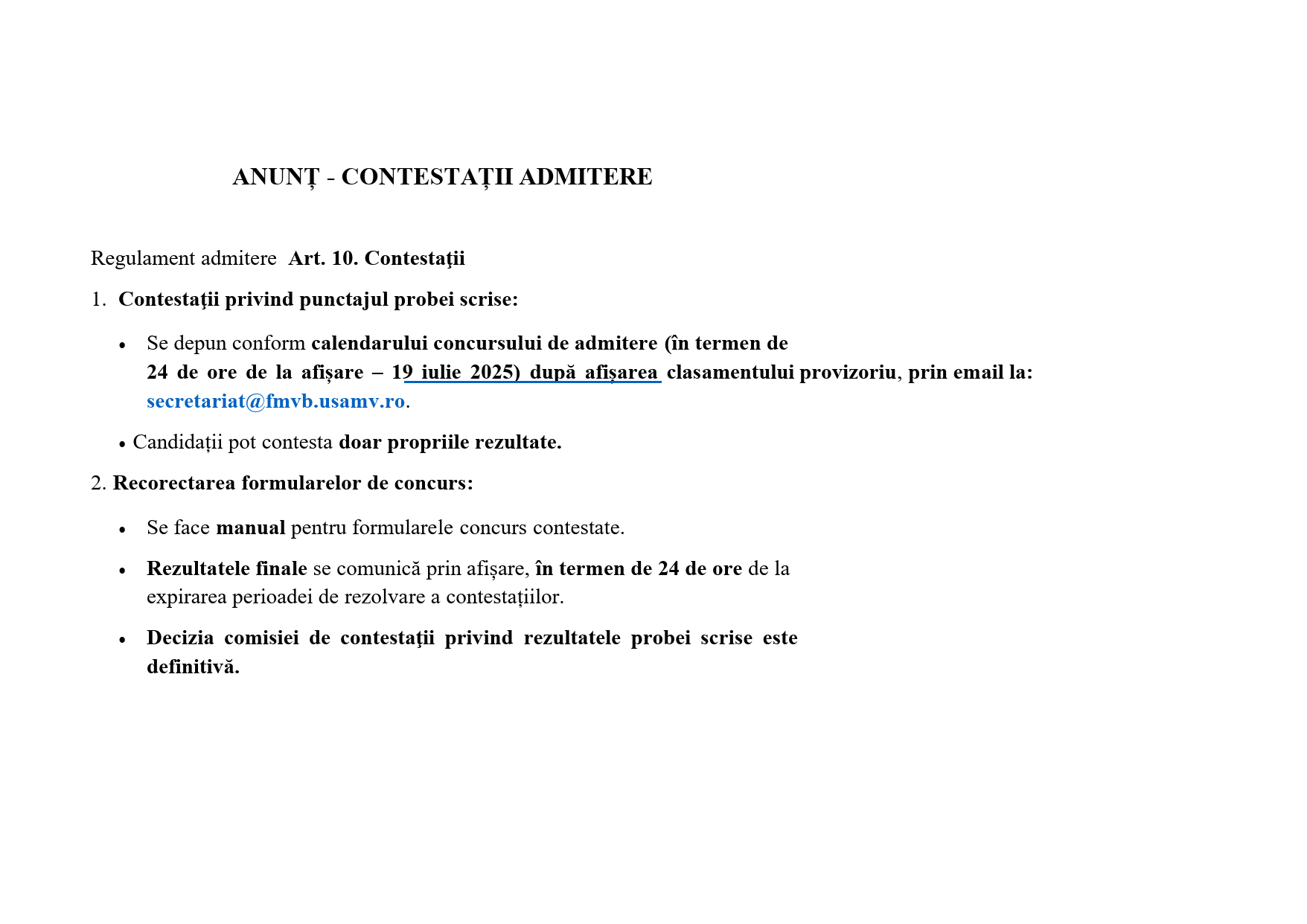 Informații Admitere FMVB – Sesiunea Iulie-August 2025