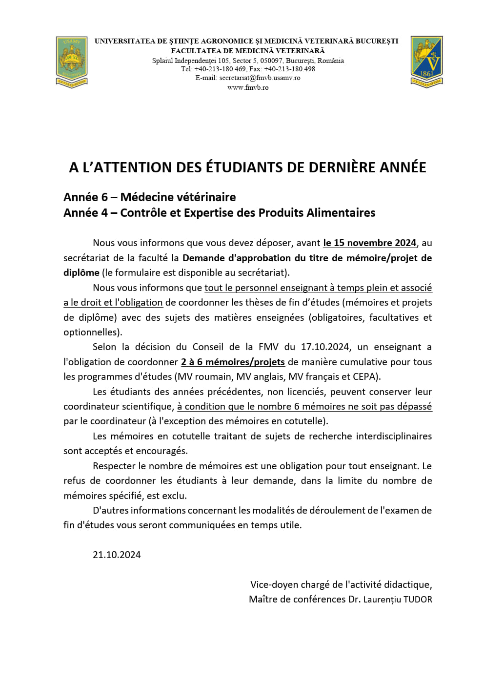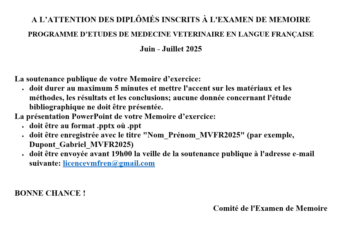 A L’ATTENTION DES ÉTUDIANTS DE DERNIÈRE ANNÉE
