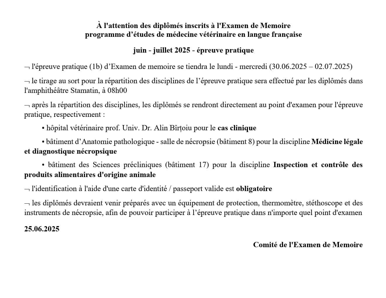 Programme Médecine Vétérinaire: Épreuve 1b – ÉPREUVE PRATIQUE : 2025
